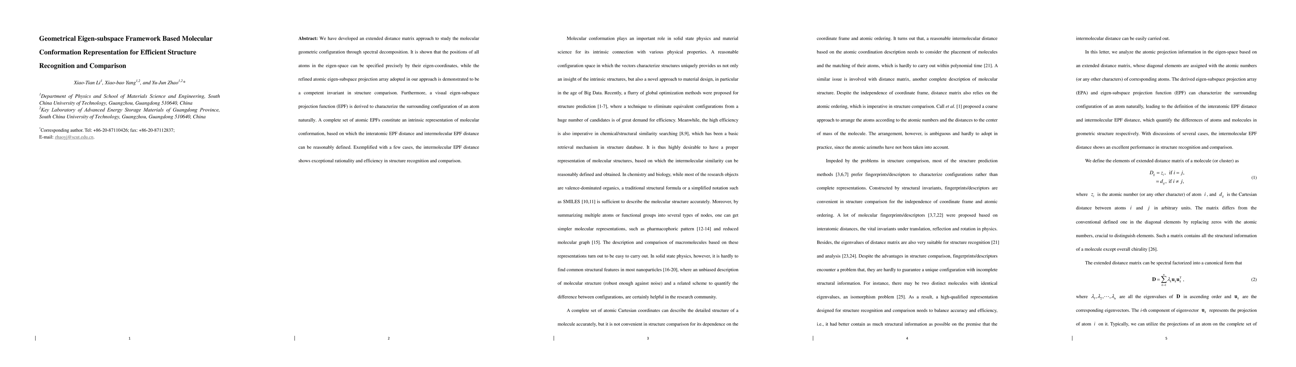 This paper introduces an extended distance matrix approach for molecular conformation representation using spectral decomposition and eigen-subspace frameworks. The refined atomic eigen-subspace projection array serves as an invariant for structure comparison, while the visual eigen-subspace projection function (EPF) provides an intrinsic representation of molecular conformation, enabling efficient and rational structure recognition and comparison.