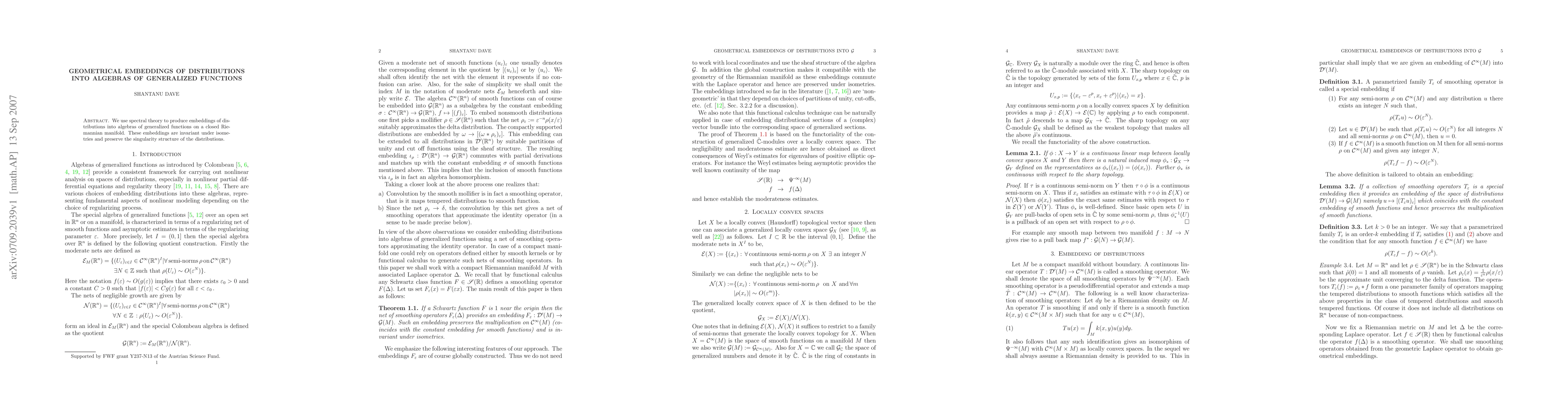 Researchers developed embeddings of distributions into algebras of generalized functions on a closed Riemannian manifold, preserving singularity structure under isometries.