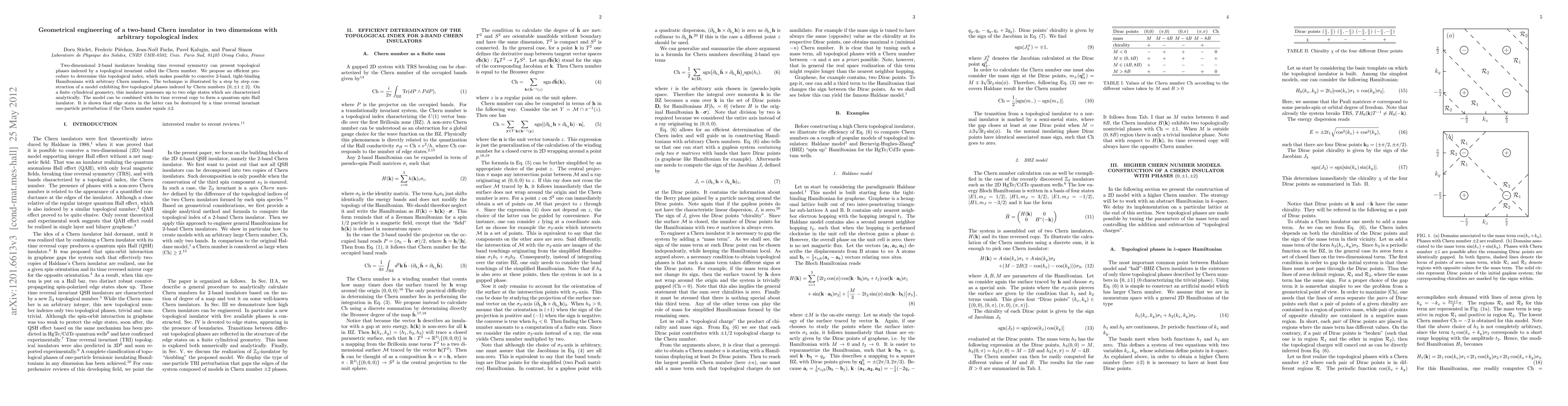 This paper proposes a method for determining the topological index of two-dimensional 2-band insulators, allowing for the construction of Chern insulators with arbitrary Chern numbers. The authors demonstrate the creation of a quantum anomalous Hall insulator that can be tuned through five topological phases, sustaining up to two edge states.