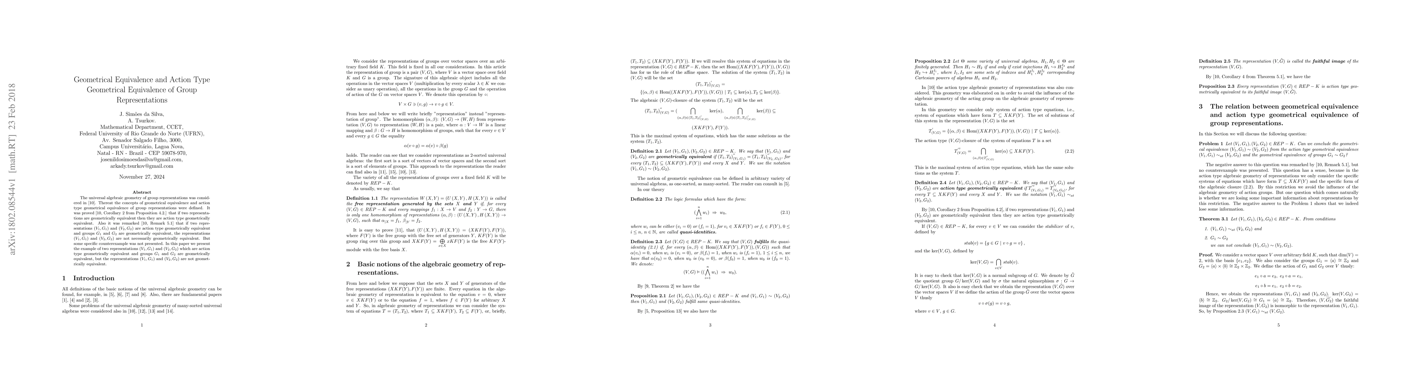 This paper proves that geometrical equivalence of group representations cannot be concluded from action-type geometrical equivalence or group geometrical equivalence. It provides an example to illustrate this impossibility.