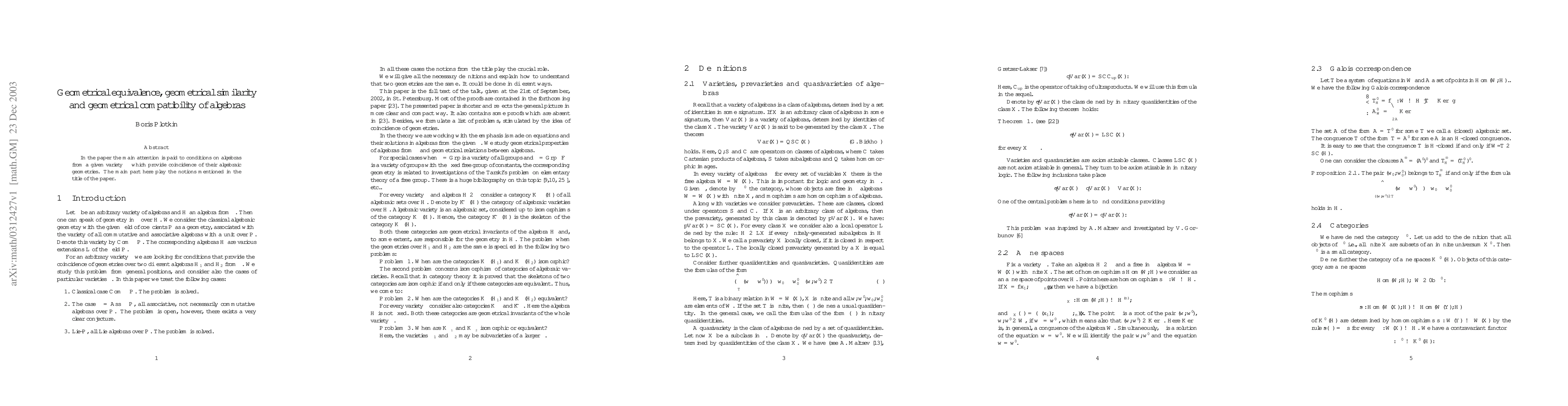 In the paper the main attention is paid to conditions on algebras from a given variety which provide coincidence of their algebraic geometries. The main part here play the notions mentioned in the title of the paper.