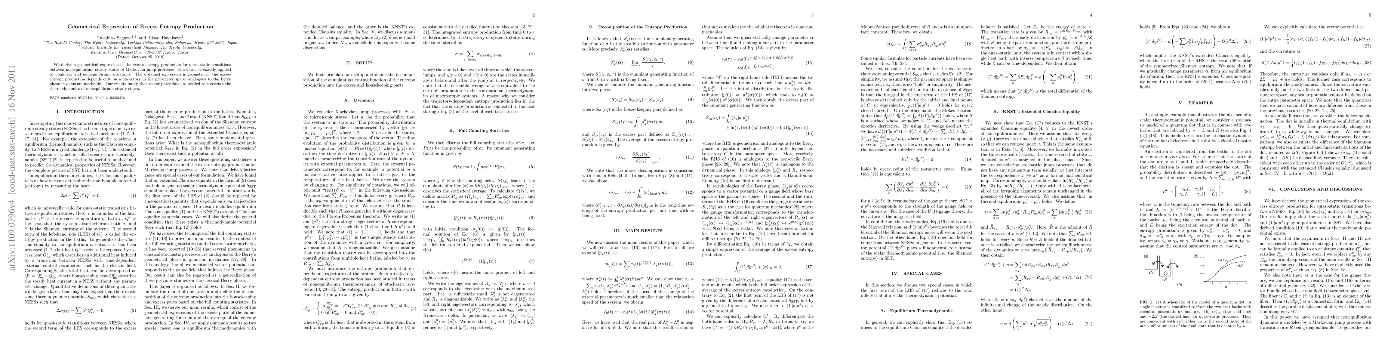 This paper derives a geometrical expression for excess entropy production in Markovian jump processes, showing it depends solely on the trajectory in parameter space, akin to the Berry phase in quantum mechanics, and highlights the necessity of vector potentials in nonequilibrium steady state thermodynamics.