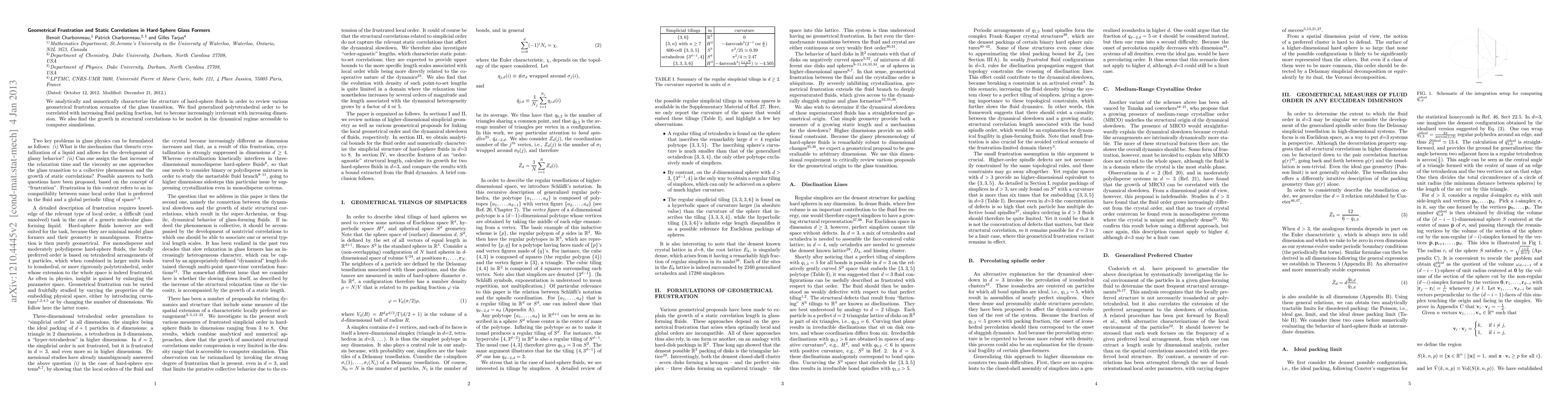 This paper investigates the geometrical frustration and static correlations in hard-sphere glass formers, revealing generalized polytetrahedral order correlates with packing fraction but diminishes with higher dimensions. The study finds modest growth in structural correlations in the dynamical regime accessible via simulations.