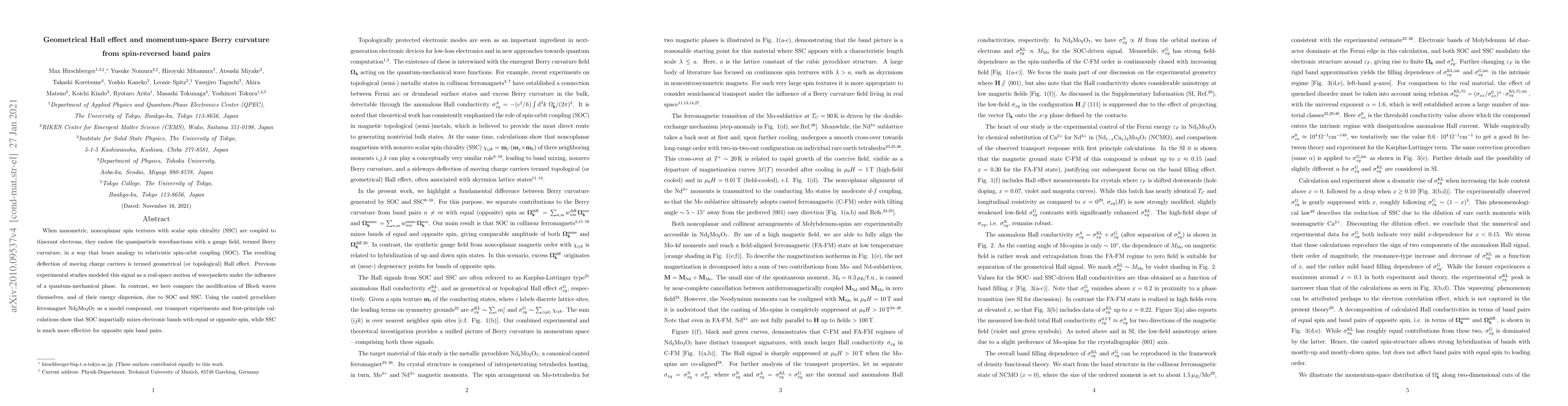 When nanometric, noncoplanar spin textures with scalar spin chirality (SSC) are coupled to itinerant electrons, they endow the quasiparticle wavefunctions with a gauge field, termed Berry curvature, in a way that bears analogy to relativistic spin-orbit coupling (SOC). The resulting deflection of moving charge carriers is termed geometrical (or topological) Hall effect. Previous experimental studies modeled this signal as a real-space motion of wavepackets under the influence of a quantum-mechanical phase. In contrast, we here compare the modification of Bloch waves themselves, and of their energy dispersion, due to SOC and SSC. Using the canted pyrochlore ferromagnet Nd$_2$Mo$_2$O$_7$ as a model compound, our transport experiments and first-principle calculations show that SOC impartially mixes electronic bands with equal or opposite spin, while SSC is much more effective for opposite spin band pairs.