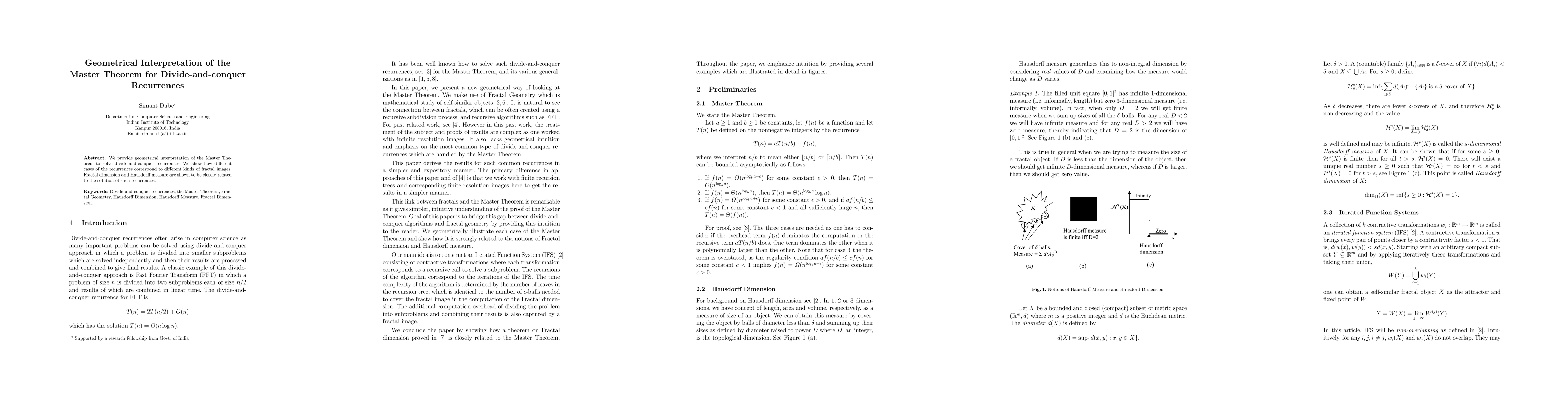 This paper offers a geometrical interpretation of the Master Theorem for solving divide-and-conquer recurrences, demonstrating how different cases correspond to various fractal images. It links fractal dimension and Hausdorff measure to the solutions of these recurrences.