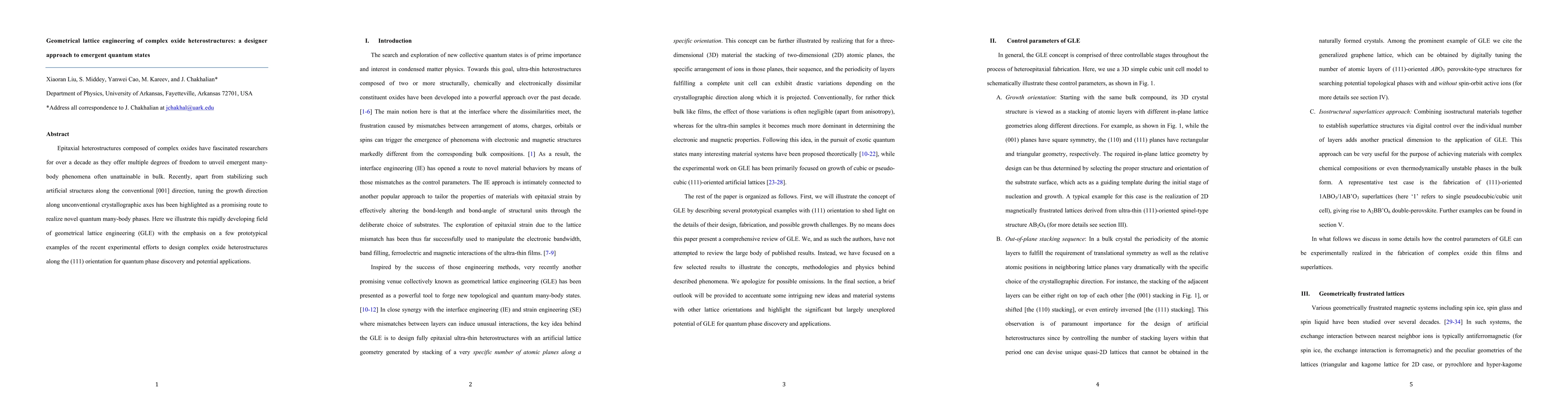 This paper explores the innovative approach of geometrical lattice engineering in epitaxial heterostructures made from complex oxides, focusing on the (111) orientation to discover novel quantum many-body phases and potential applications. The study highlights recent experimental efforts in this rapidly developing field.