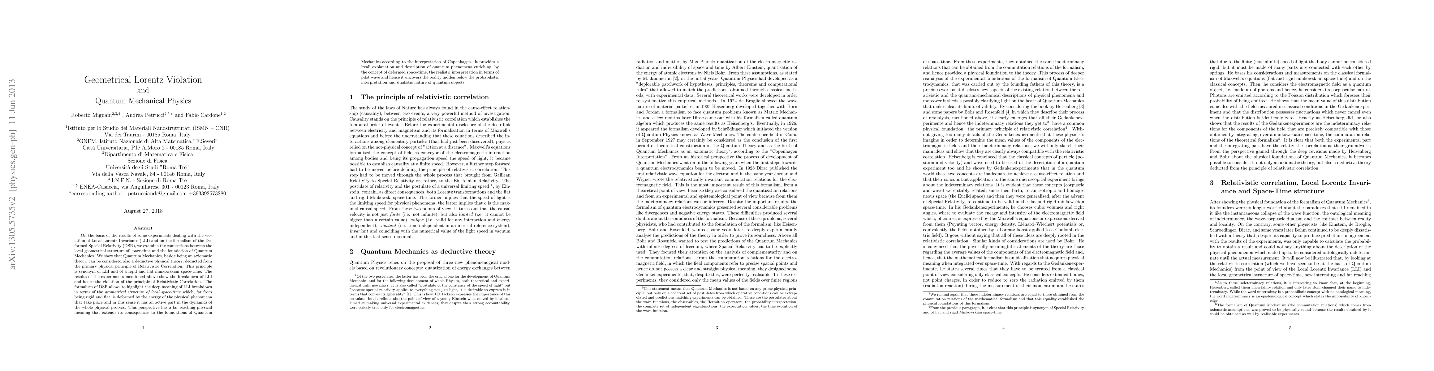 On the basis of the results of some experiments dealing with the violation of Local Lorentz Invariance (LLI) and on the formalism of the Deformed Special Relativity (DSR), we examine the connections between the local geometrical structure of space-time and the foundation of Quantum Mechanics. We show that Quantum Mechanics, beside being an axiomatic theory, can be considered also a deductive physical theory, deducted from the primary physical principle of Relativistic Correlation. This principle is synonym of LLI and of a rigid and at minkowskian space-time. The results of the experiments mentioned above show the breakdown of LLI and hence the violation of the principle of Relativistic Correlation. The formalism of DSR allows to highlight the deep meaning of LLI breakdown in terms of the geometrical structure of local space-time which, far from being rigid and at, is deformed by the energy of the physical phenomena that take place and in this sense it has an active part in the dynamics of the whole physical process. This perspective has a far reaching physical meaning that extends its consequences to the foundations of Quantum Mechanics according to the interpretation of Copenhagen. It provides a 'real' explanation and description of quantum phenomena enriching, by the concept of deformed space-time, the realistic interpretation in terms of pilot wave and hence it uncovers the reality hidden below the probabilistic interpretation and dualistic nature of quantum objects.
