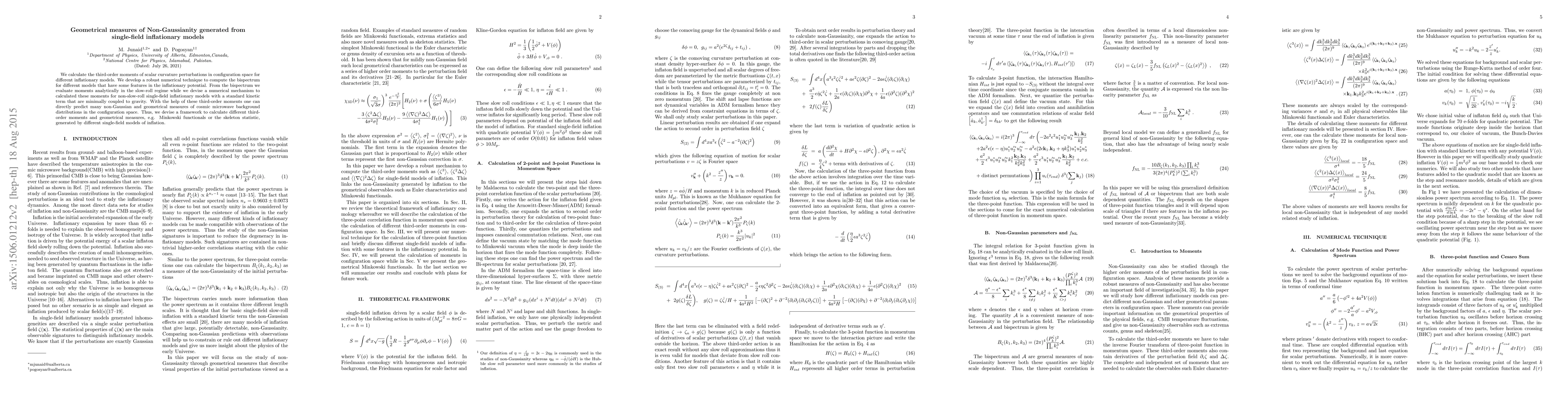Researchers developed a method to calculate non-Gaussianity measures from single-field inflationary models, enabling predictions of geometric properties in the universe.