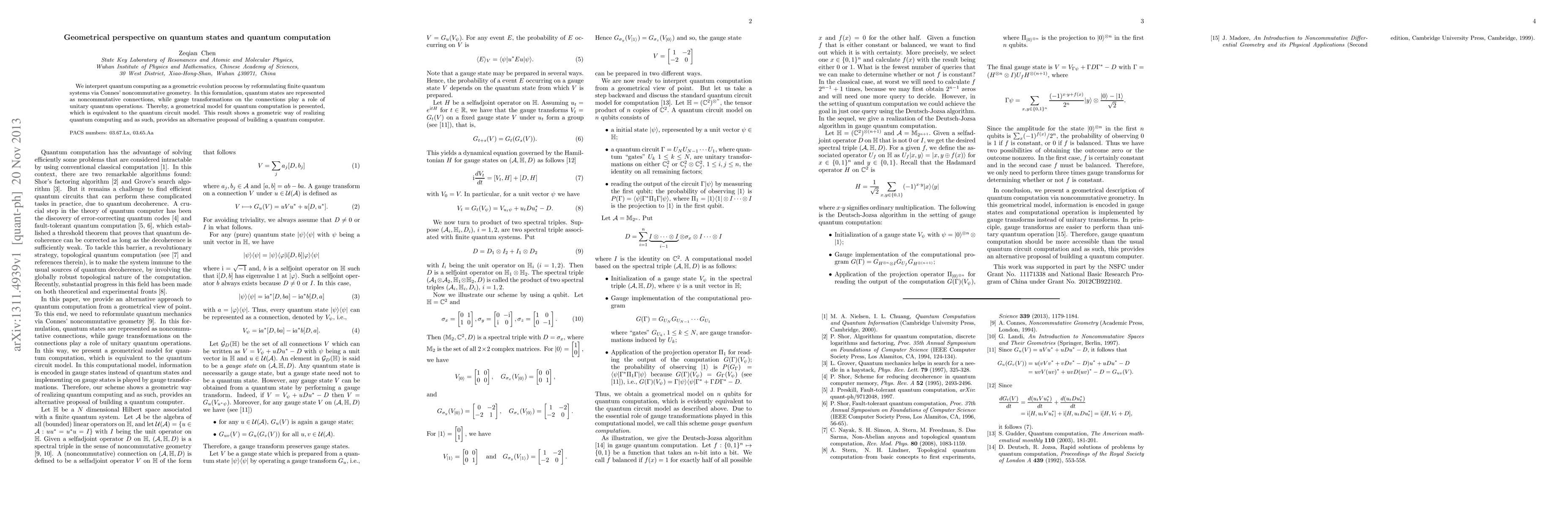 A new geometric interpretation of quantum computing is proposed, where quantum states are represented as noncommutative connections, offering an alternative way to build a quantum computer.