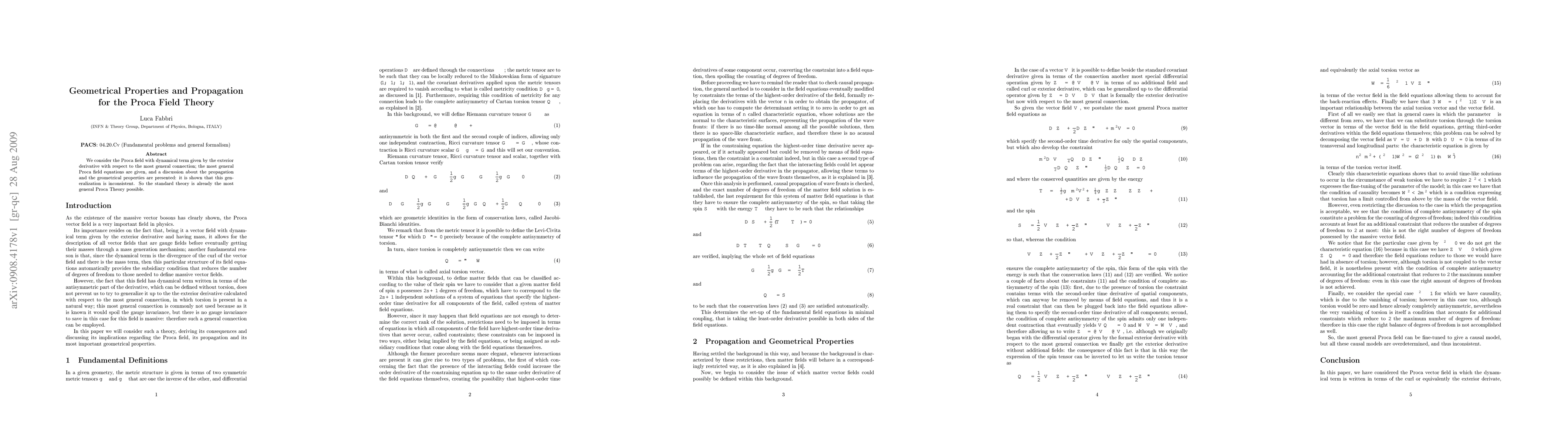 We consider the Proca field with dynamical term given by the exterior derivative with respect to the most general connection; the most general Proca field equations are given, and a discussion about the propagation and the geometrical properties are presented: it is shown that this generalization is inconsistent. So the standard theory is already the most general Proca Theory possible.