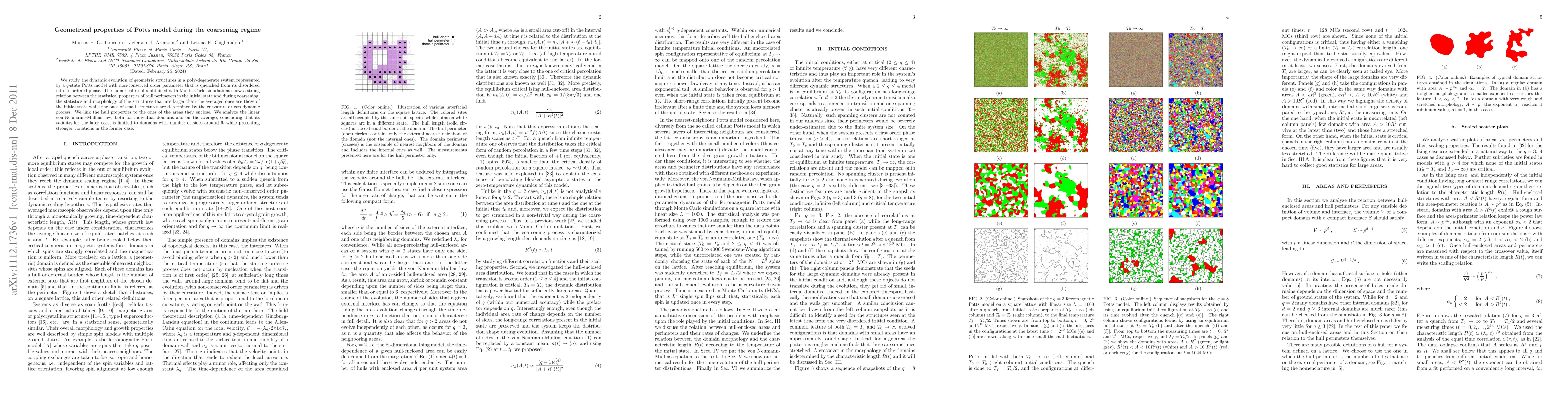 We study the dynamic evolution of geometric structures in a poly-degenerate system represented by a $q$-state Potts model with non-conserved order parameter that is quenched from its disordered into its ordered phase. The numerical results obtained with Monte Carlo simulations show a strong relation between the statistical properties of hull perimeters in the initial state and during coarsening: the statistics and morphology of the structures that are larger than the averaged ones are those of the initial state while the ones of small structures are determined by the curvature driven dynamic process. We link the hull properties to the ones of the areas they enclose. We analyze the linear von-Neumann--Mullins law, both for individual domains and on the average, concluding that its validity, for the later case, is limited to domains with number of sides around 6, while presenting stronger violations in the former case.