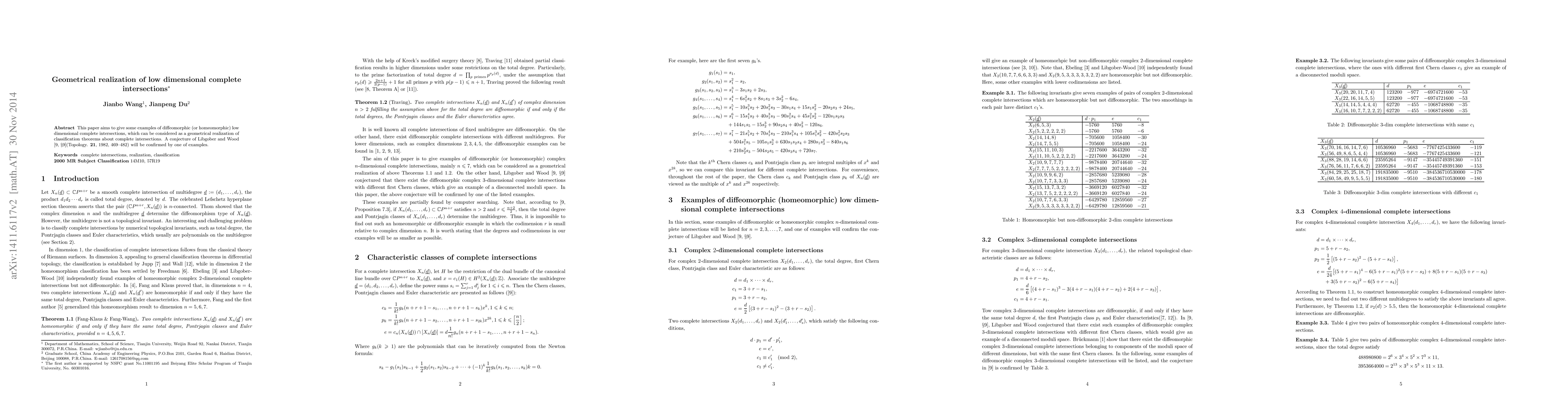 This paper provides examples of diffeomorphic (or homeomorphic) low-dimensional complete intersections, confirming a conjecture by Libgober and Wood and illustrating the geometrical realization of classification theorems for such intersections.