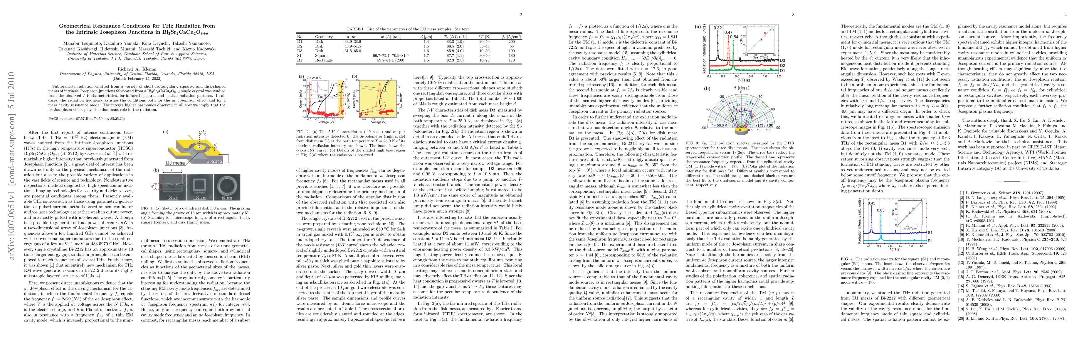 This study investigates subterahertz radiation from various shaped mesas of intrinsic Josephson junctions in Bi2Sr2CaCu2O8+d crystals, revealing that the emitted radiation aligns with both ac Josephson effect and mesa cavity resonance conditions, with integer higher harmonics indicating the ac Josephson effect's dominant role in the radiation mechanism.