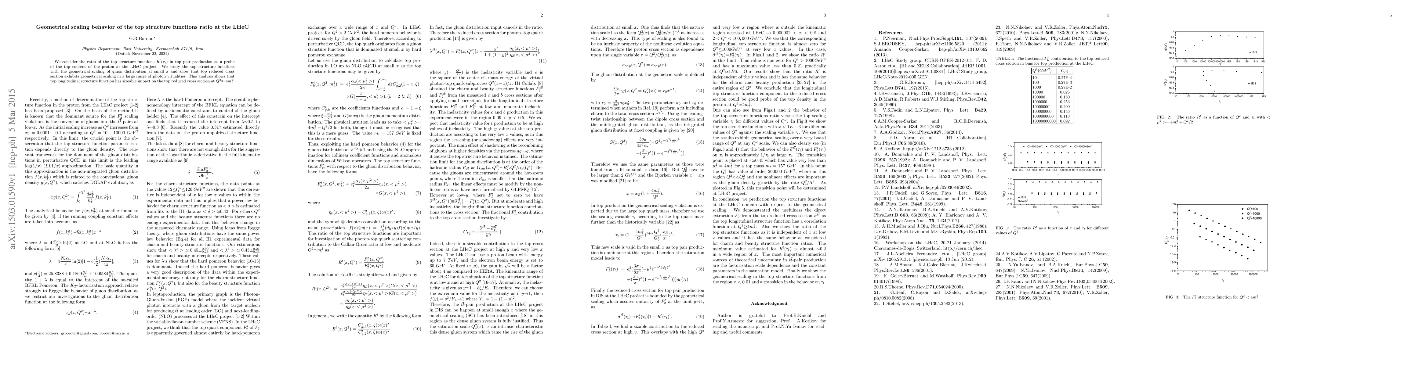 We consider the ratio of the top structure functions $R^{t}(\tau_{t})$ in top pair production as a probe of the top content of the proton at the LHeC project. We study the top structure functions with the geometrical scaling of gluon distribution at small $x$ and show that top reduced cross section exhibits geometrical scaling in a large range of photon vitualities. This analysis shows that top longitudinal structure function has sizeable impact on the top reduced cross section at $Q^{2}{\approx}~ 4m_{t}^{2}$.