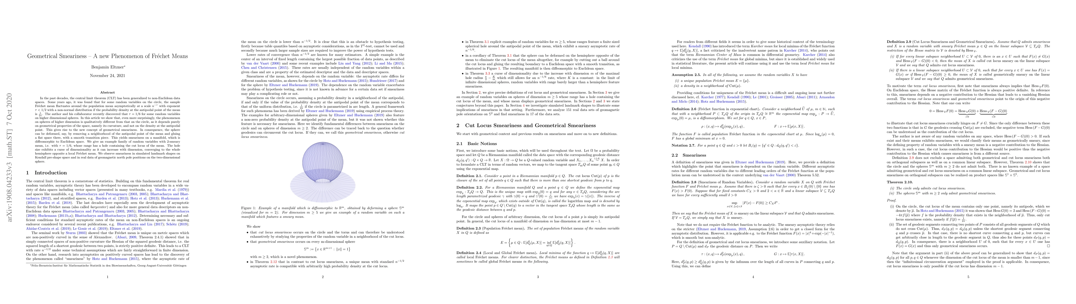 The paper introduces the concept of "geometrical smeariness" in Fr\'echet means on higher-dimensional spheres, revealing that the fluctuation scale depends on the space's curvature rather than density properties, leading to a non-normal distribution and exhibiting a curse of dimensionality. Smeariness can be induced by altering the manifold, highlighting its prevalence in both simulated and real-world data.