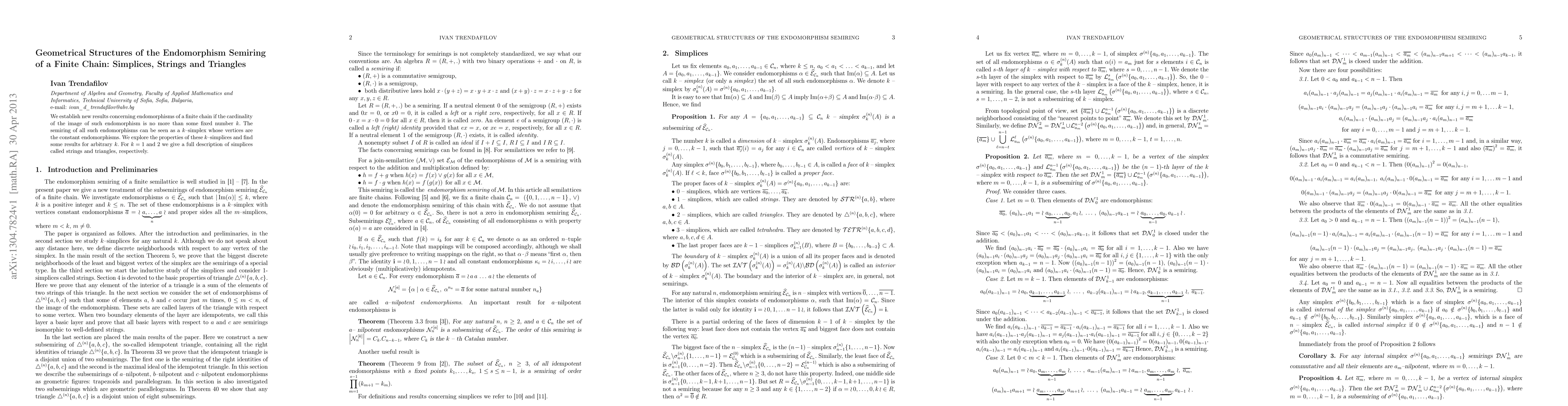 We establish new results concerning endomorphisms of a finite chain if the cardinality of the image of such endomorphism is no more than some fixed number k. The semiring of all such endomorphisms can be seen as a k - simplex whose vertices are the constant endomorphisms. We explore the properties of these k - simplices and find some results for arbitrary k. For k = 1 and 2 we give a full description of simplices called strings and triangles, respectively.