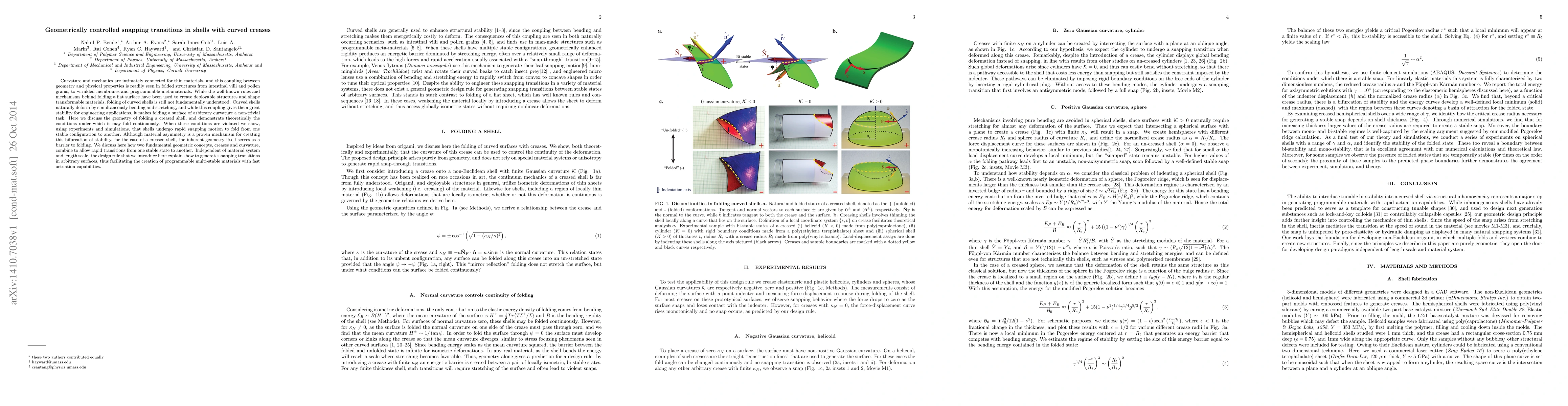This paper explores the geometrically controlled snapping transitions in curved shells with creased structures, demonstrating how inherent geometry, rather than material asymmetry, can induce rapid folding transitions. The study provides a theoretical framework and experimental validation for understanding and designing programmable multi-stable materials with fast actuation.