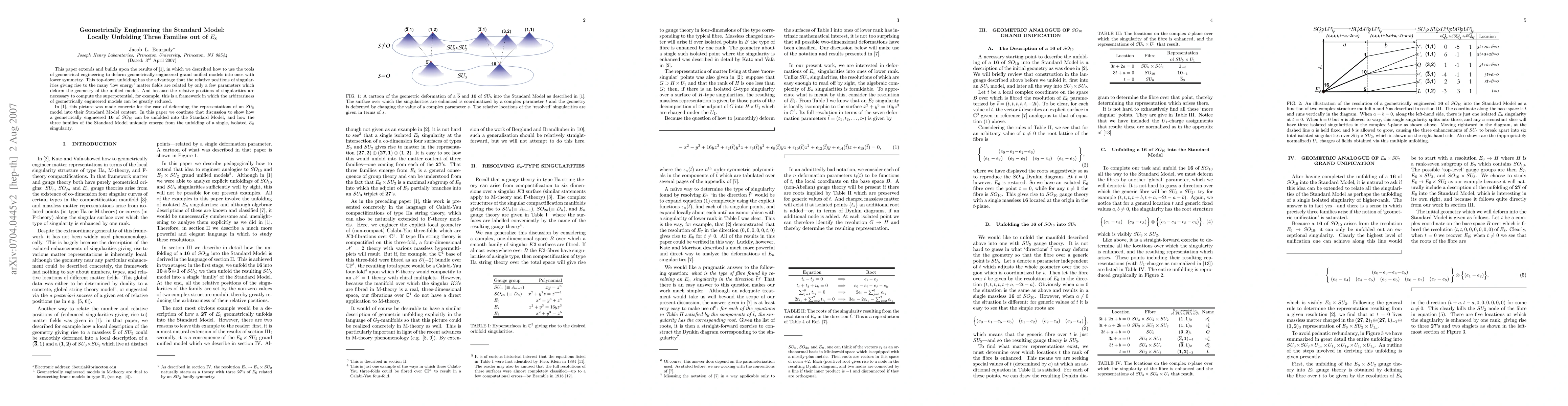 This paper extends and builds upon the results of an earlier paper, in which we described how to use the tools of geometrical engineering to deform geometrically-engineered grand unified models into ones with lower symmetry. This top-down unfolding has the advantage that the relative positions of singularities giving rise to the many `low energy' matter fields are related by only a few parameters which deform the geometry of the unified model. And because the relative positions of singularities are necessary to compute the superpotential, for example, this is a framework in which the arbitrariness of geometrically engineered models can be greatly reduced. In our earlier paper, this picture was made concrete for the case of deforming the representations of an SU(5) model into their Standard Model content. In this paper we continue that discussion to show how a geometrically engineered 16 of SO(10) can be unfolded into the Standard Model, and how the three families of the Standard Model uniquely emerge from the unfolding of a single, isolated E8 singularity.