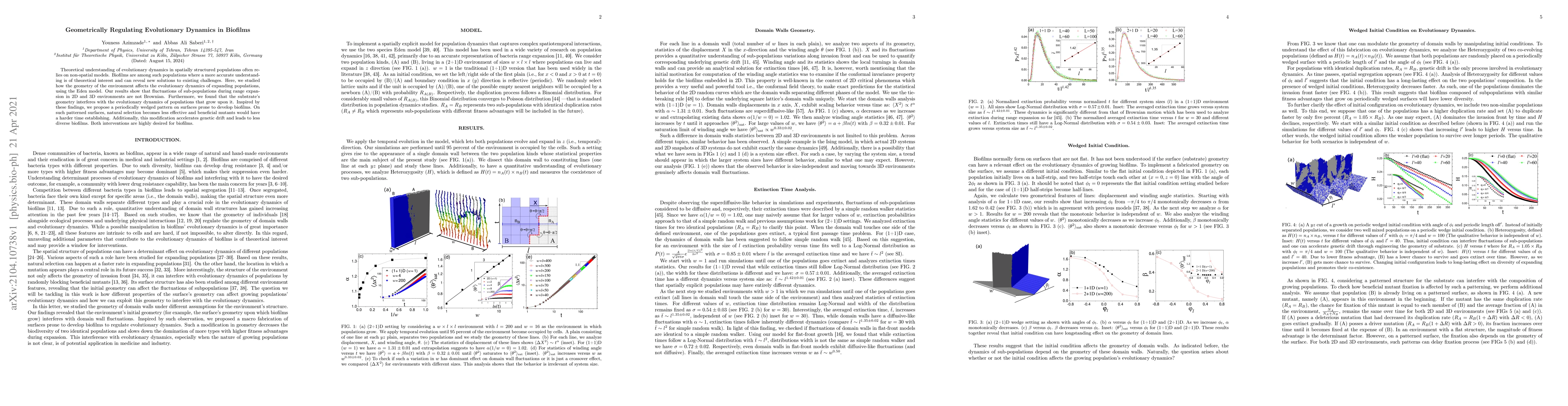 Theoretical understanding of evolutionary dynamics in spatially structured populations often relies on non-spatial models. Biofilms are among such populations where a more accurate understanding is of theoretical interest and can reveal new solutions to existing challenges. Here, we studied how the geometry of the environment affects the evolutionary dynamics of expanding populations, using the Eden model. Our results show that fluctuations of sub-populations during range expansion in 2D and 3D environments are not Brownian. Furthermore, we found that the substrate's geometry interferes with the evolutionary dynamics of populations that grow upon it. Inspired by these findings, we propose a periodically wedged pattern on surfaces prone to develop biofilms. On such patterned surfaces, natural selection becomes less effective and beneficial mutants would have a harder time establishing. Additionally, this modification accelerates genetic drift and leads to less diverse biofilms. Both interventions are highly desired for biofilms.