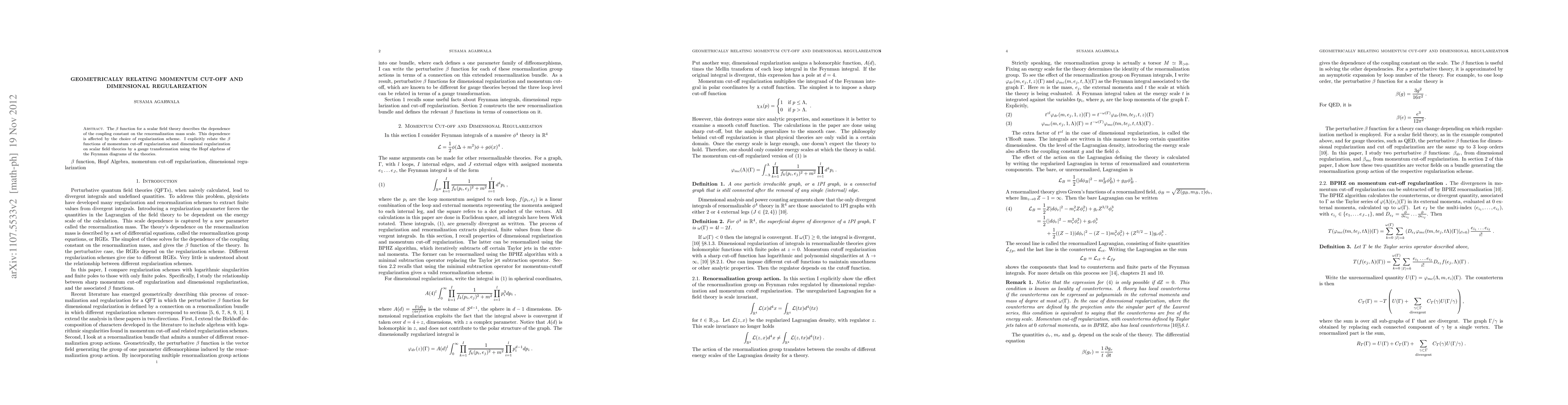 This paper explores the relationship between the $\beta$-functions in momentum cut-off and dimensional regularization schemes for scalar field theories, establishing a connection via gauge transformations and the Hopf algebras of Feynman diagrams. The study highlights how regularization methods impact the dependence of coupling constants on the renormalization mass scale.
