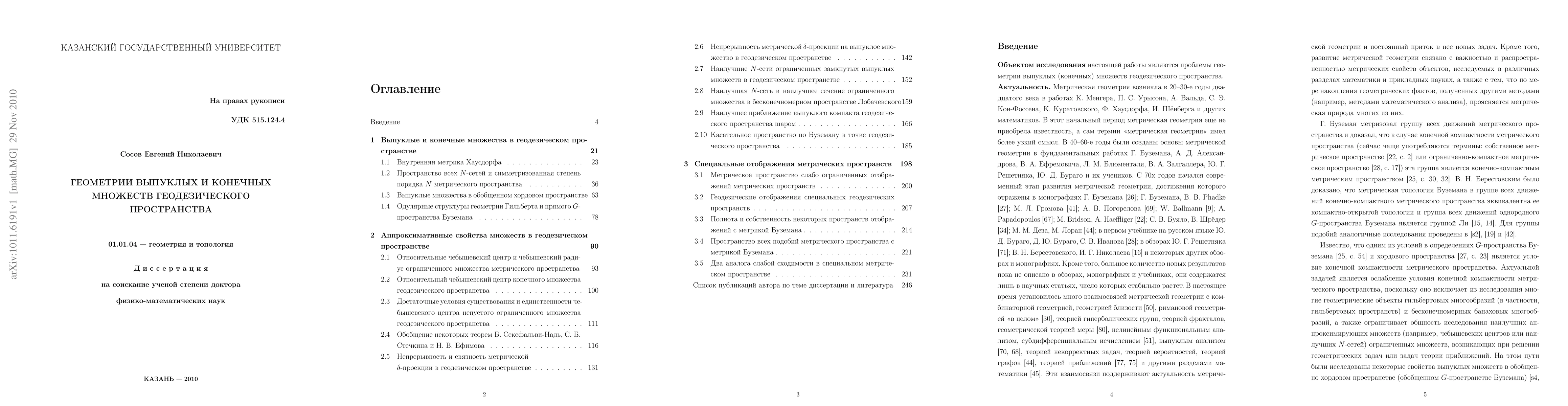 The work consists of solutions of metric problems for convex and finite subsets of geodesic spaces.