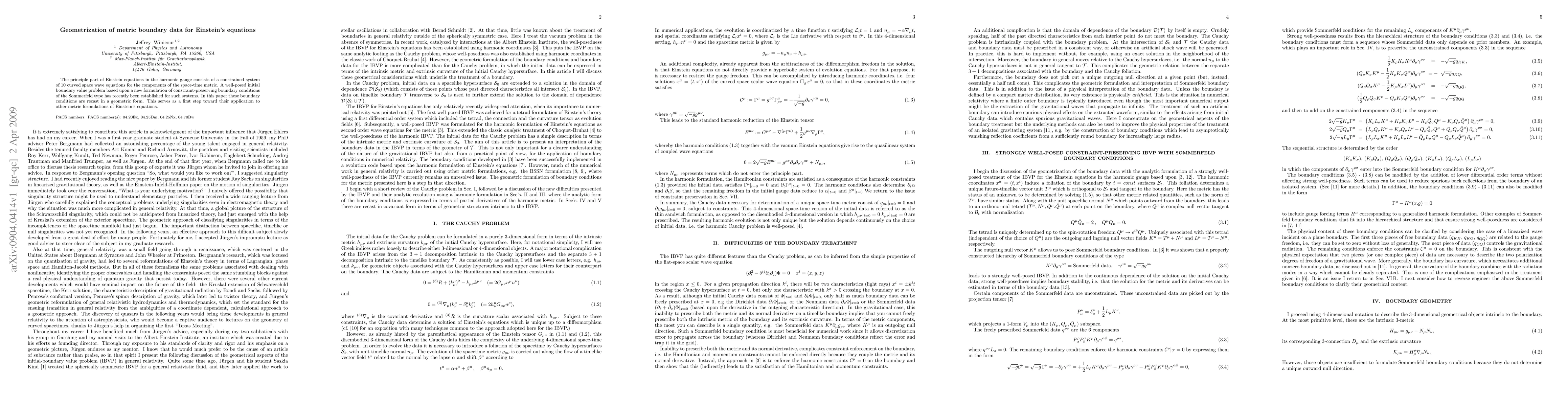This paper reformulates constraint-preserving boundary conditions for Einstein's equations in a geometric form, establishing a new approach for initial boundary value problems in the harmonic gauge and paving the way for broader applications to metric formulations of the equations.