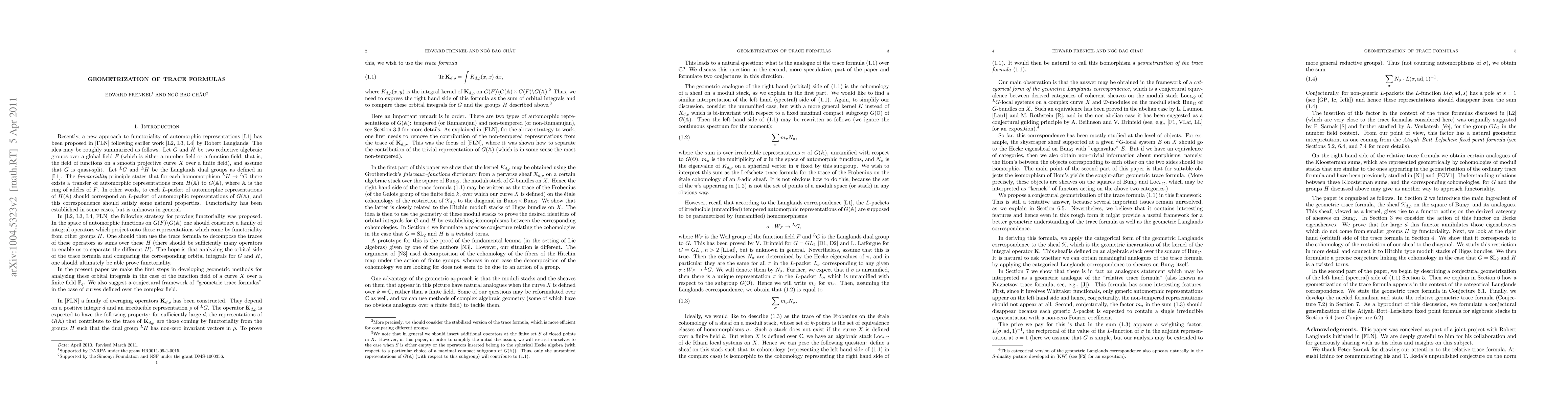 This paper initiates the development of geometric methods to analyze trace formulas for function fields of curves over finite fields, building on previous work with Robert Langlands. It proposes a conjectural framework for geometric trace formulas for curves over the complex field, leveraging the categorical geometric Langlands correspondence.