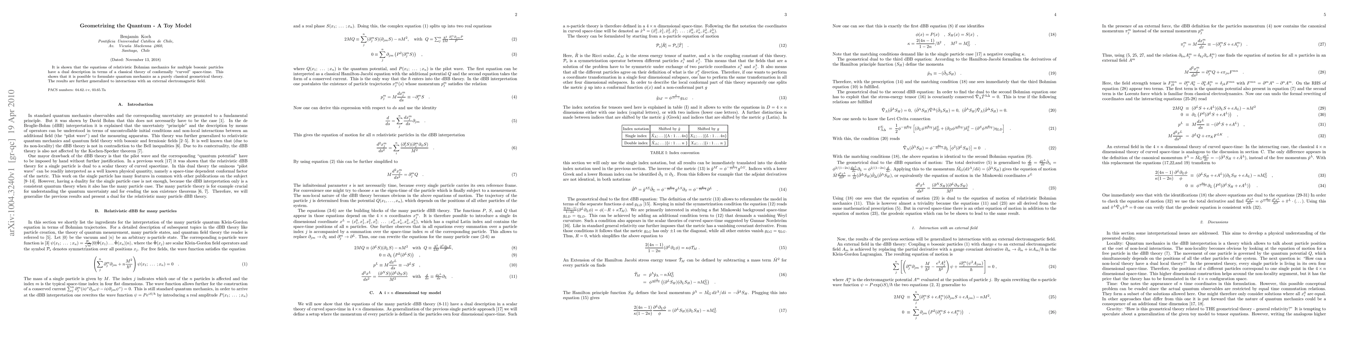 It is shown that the equations of relativistic Bohmian mechanics for multiple bosonic particles have a dual description in terms of a classical theory of conformally "curved" space-time. This shows that it is possible to formulate quantum mechanics as a purely classical geometrical theory. The results are further generalized to interactions with an external electromagnetic field.