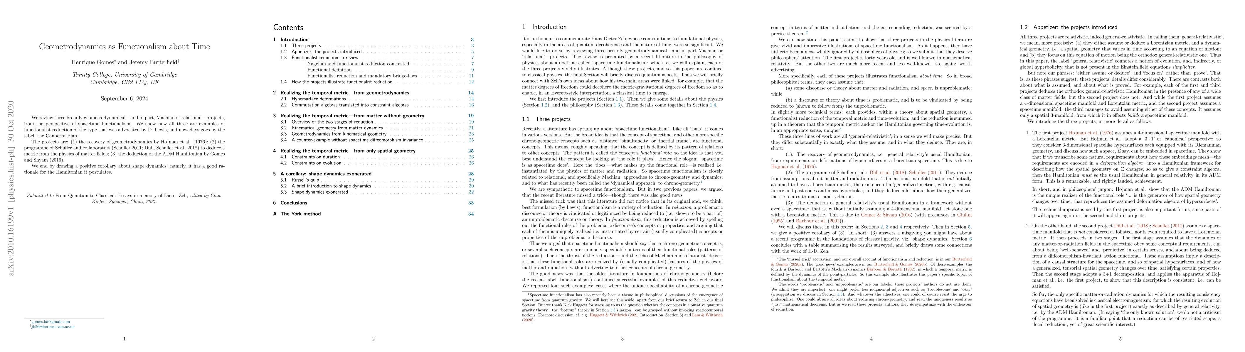 This paper reviews three geometrodynamical projects through the lens of spacetime functionalism, demonstrating their alignment with Lewis's 'Canberra Plan'. It highlights the recovery of geometrodynamics, the deduction of a metric from matter fields, and the ADM Hamiltonian, concluding that shape dynamics has a strong rationale for its postulated Hamiltonian.