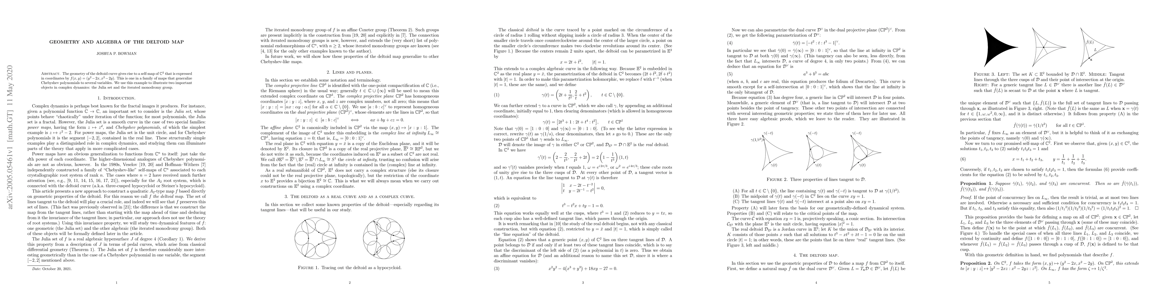 The geometry of the deltoid curve gives rise to a self-map of $\mathbb{C}^2$ that is expressed in coordinates by $f(x,y) = (y^2 - 2x, x^2 - 2y)$. This is one in a family of maps that generalize Chebyshev polynomials to several variables. We use this example to illustrate two important objects in complex dynamics: the Julia set and the iterated monodromy group.