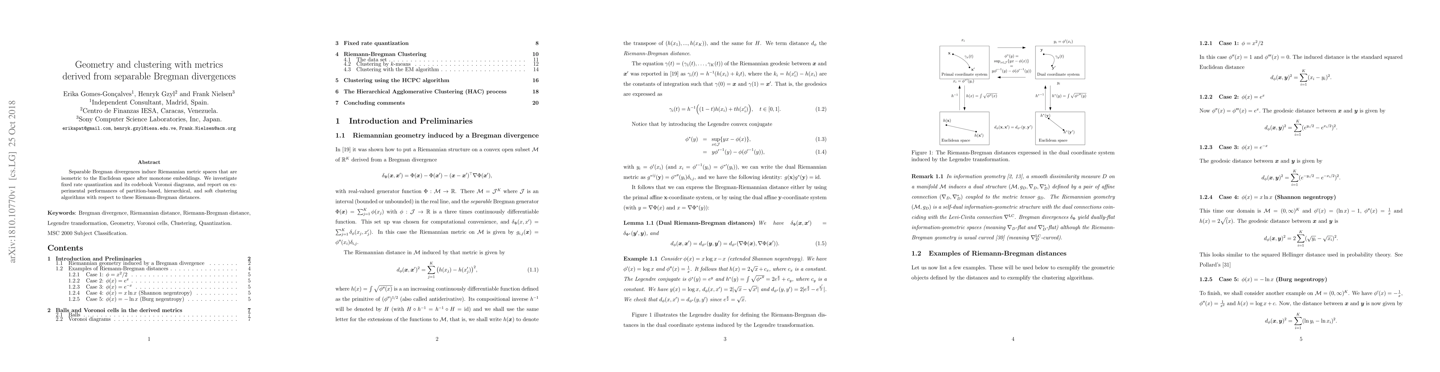 This research paper explores the use of separable Bregman divergences to create Riemannian metric spaces for clustering algorithms. It finds that these distances improve performance in partition-based, hierarchical, and soft clustering methods with fixed rate quantization.