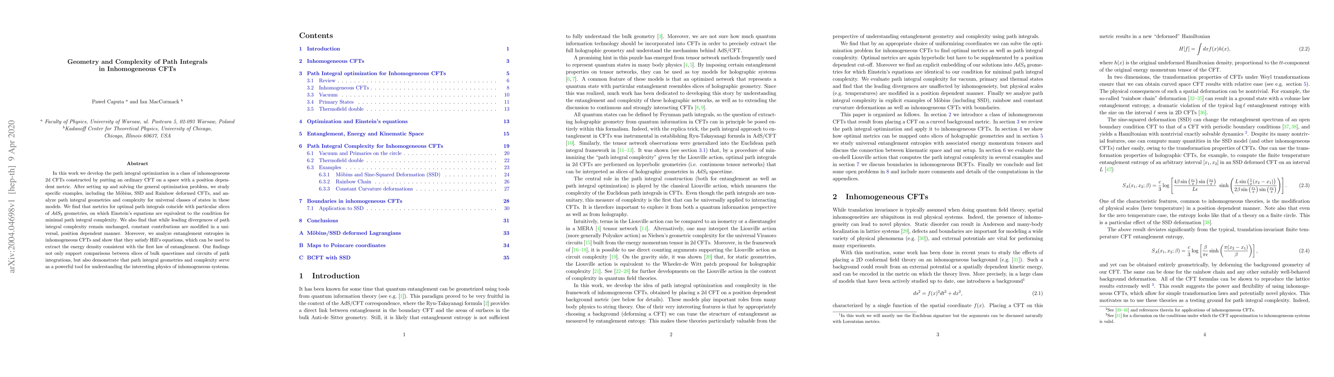 Researchers develop a new approach to understanding path integrals in inhomogeneous CFTs, finding that optimal metrics coincide with specific slices of $AdS_3$ geometries and that entanglement entropies satisfy Hill's equations.