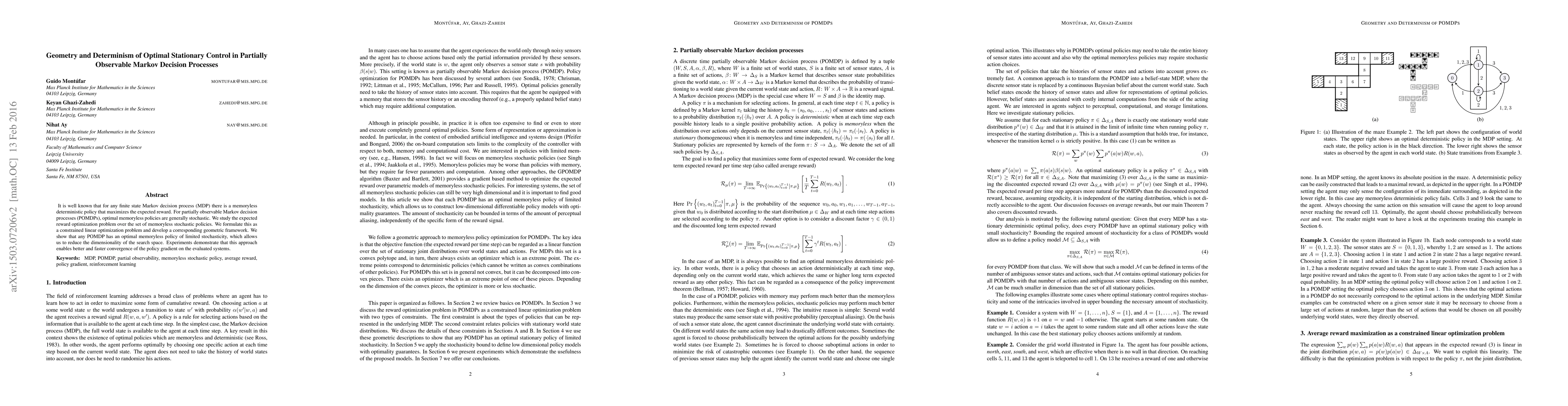 It is well known that for any finite state Markov decision process (MDP) there is a memoryless deterministic policy that maximizes the expected reward. For partially observable Markov decision processes (POMDPs), optimal memoryless policies are generally stochastic. We study the expected reward optimization problem over the set of memoryless stochastic policies. We formulate this as a constrained linear optimization problem and develop a corresponding geometric framework. We show that any POMDP has an optimal memoryless policy of limited stochasticity, which allows us to reduce the dimensionality of the search space. Experiments demonstrate that this approach enables better and faster convergence of the policy gradient on the evaluated systems.