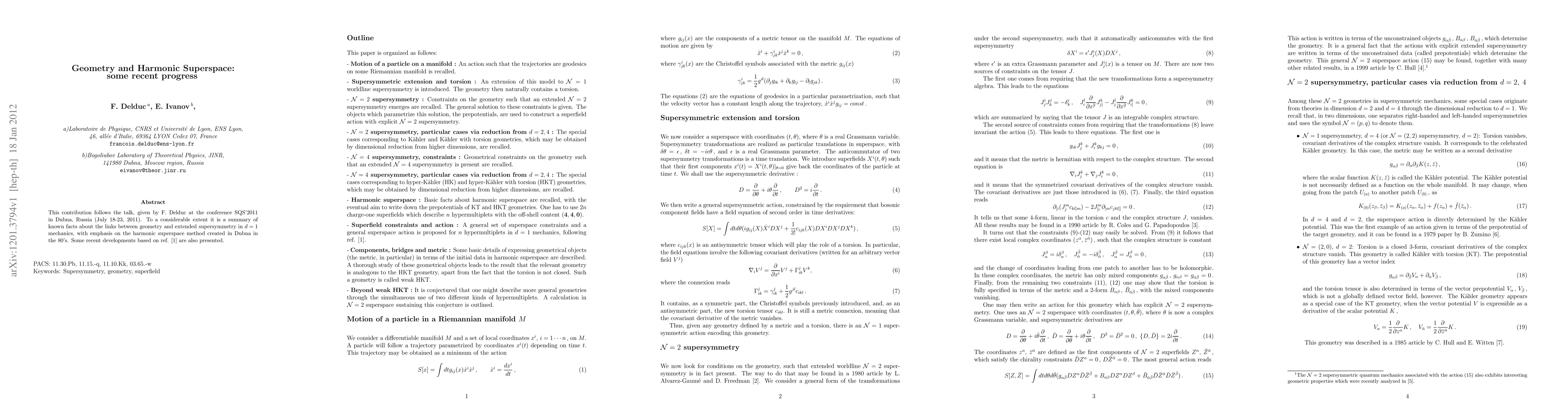 This contribution follows the talk, given by F. Delduc at the conference SQS'2011 in Dubna, Russia (July 18-23, 2011). To a considerable extent it is a summary of known facts about the links between geometry and extended supersymmetry in d=1 mechanics, with emphasis on the harmonic superspace method created in Dubna in the 80's. Some recent developments based on ref. [1] are also presented.