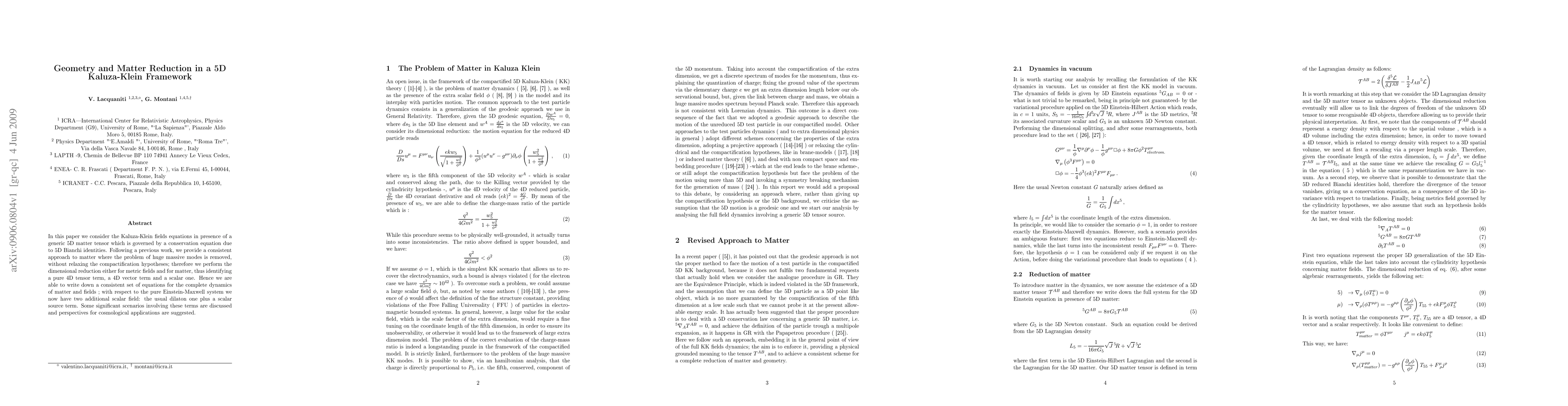 This paper explores the Kaluza-Klein theory in a 5D framework, addressing the reduction of matter fields while eliminating massive modes, leading to a consistent 4D set of equations including a tensor, vector, and scalar term. It introduces additional scalar fields, suggesting potential cosmological applications.