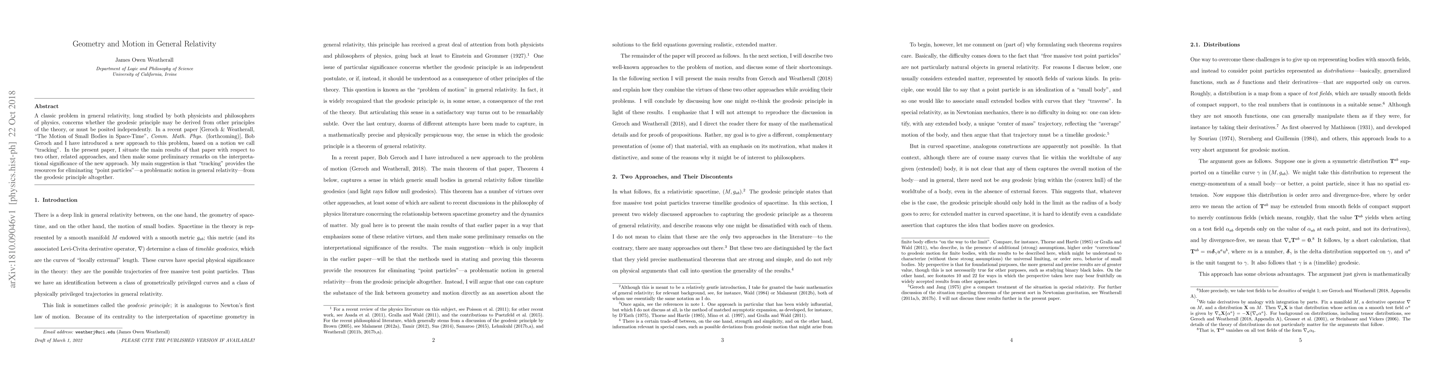 A classic problem in general relativity, long studied by both physicists and philosophers of physics, concerns whether the geodesic principle may be derived from other principles of the theory, or must be posited independently. In a recent paper [Geroch & Weatherall, "The Motion of Small Bodies in Space-Time", Comm. Math. Phys. (forthcoming)], Bob Geroch and I have introduced a new approach to this problem, based on a notion we call "tracking". In the present paper, I situate the main results of that paper with respect to two other, related approaches, and then make some preliminary remarks on the interpretational significance of the new approach. My main suggestion is that "tracking" provides the resources for eliminating "point particles"---a problematic notion in general relativity---from the geodesic principle altogether.