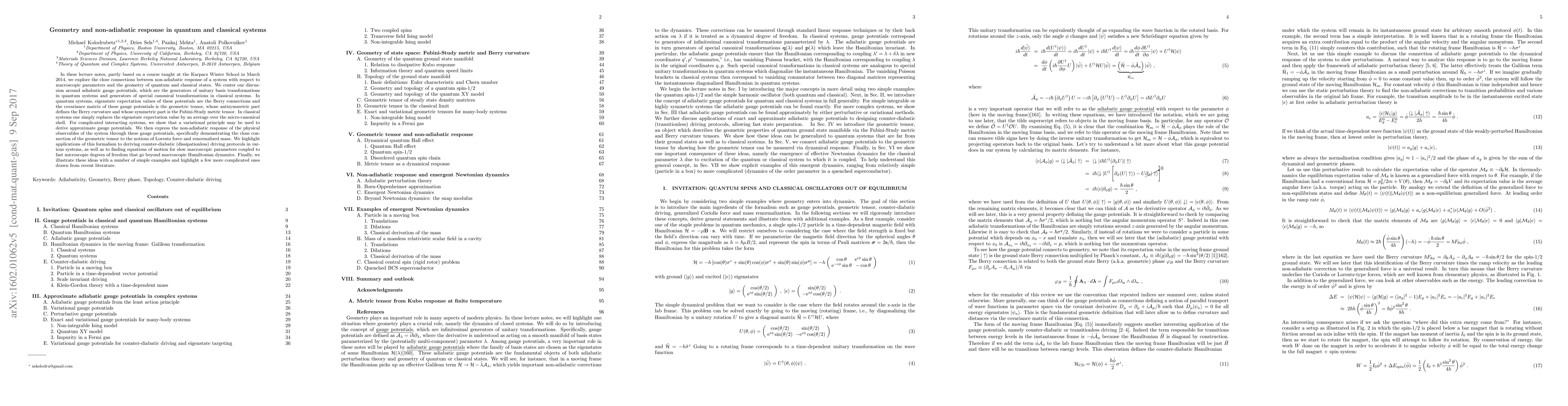 This paper explores the relationship between non-adiabatic response in quantum and classical systems and the geometry of their states, focusing on adiabatic gauge potentials. It demonstrates the connection between geometric tensors and concepts like the Lorentz force and renormalized mass, and applies this formalism to derive counter-diabatic driving protocols and equations of motion for coupled macroscopic and microscopic parameters.