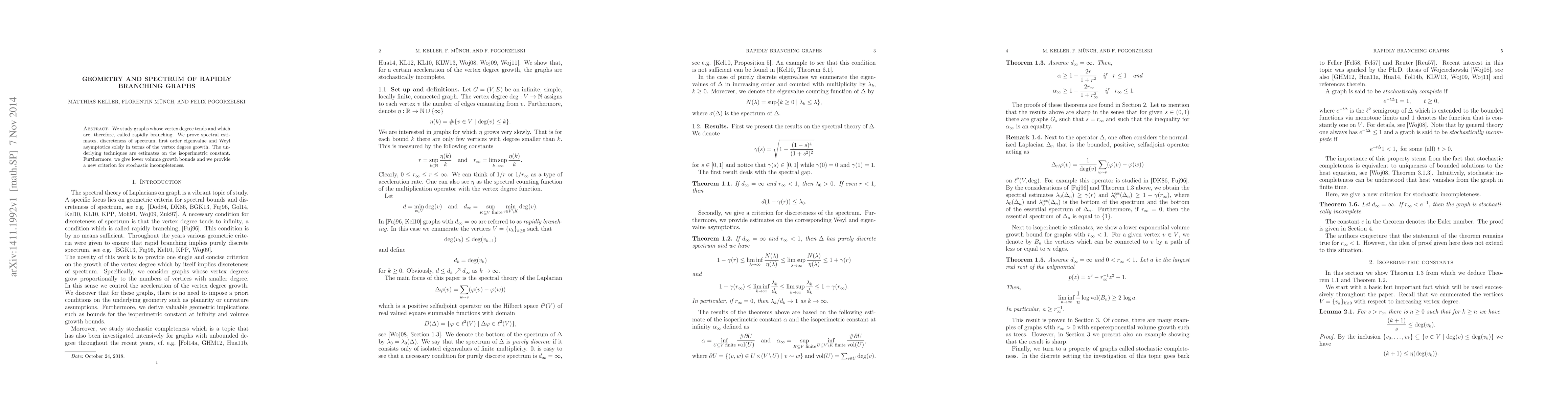 We study graphs whose vertex degree tends and which are, therefore, called rapidly branching. We prove spectral estimates, discreteness of spectrum, first order eigenvalue and Weyl asymptotics solely in terms of the vertex degree growth. The underlying techniques are estimates on the isoperimetric constant. Furthermore, we give lower volume growth bounds and we provide a new criterion for stochastic incompleteness.