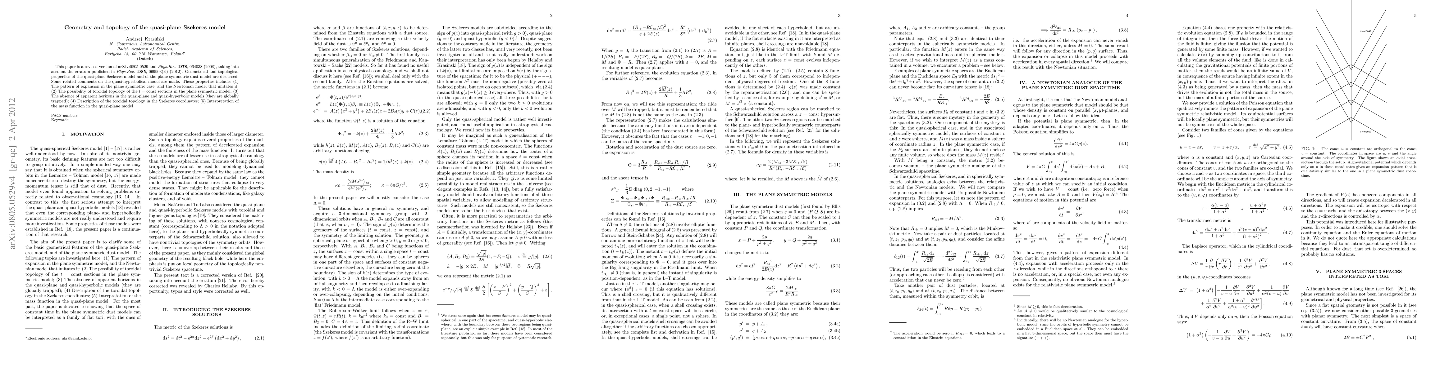 This paper examines the geometrical and topological properties of the quasi-plane Szekeres model and the plane symmetric dust model, including the pattern of expansion, potential toroidal topology, absence of apparent horizons, and the interpretation of the mass function. It also discusses the quasi-hyperbolical model and corrects previous errors.