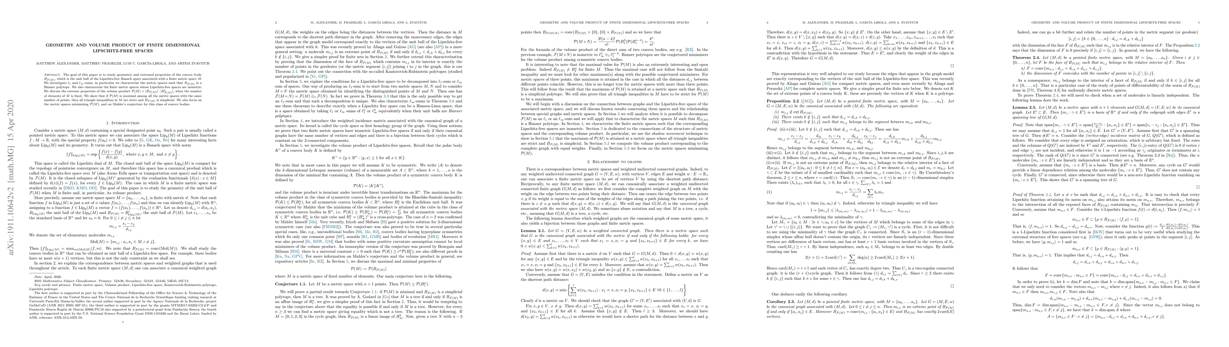This paper studies geometric properties of Lipschitz-free spaces associated with finite metric spaces, focusing on convex bodies and their volume products.