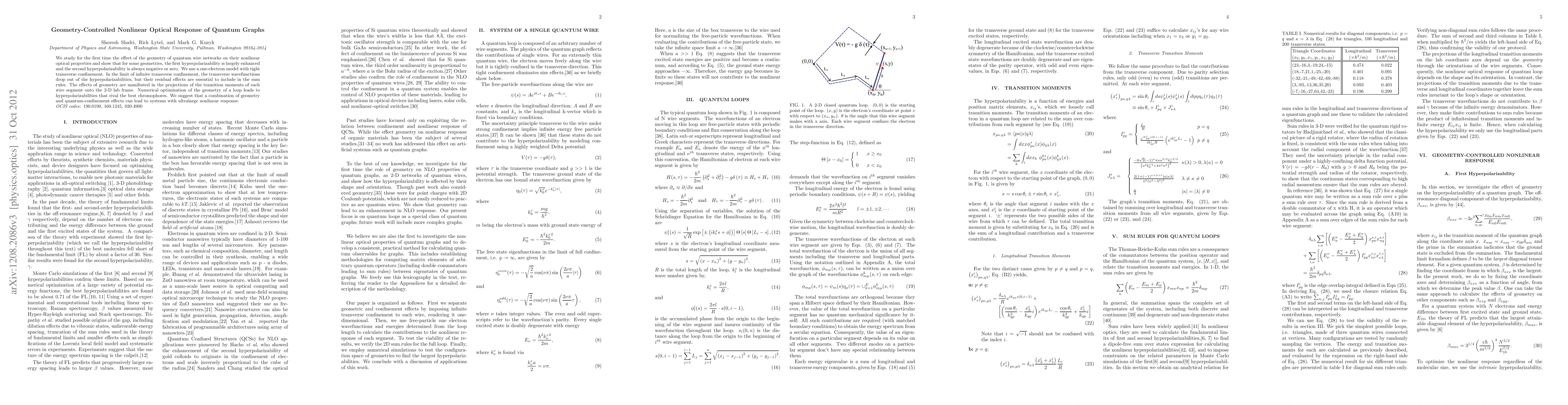 We study for the first time the effect of the geometry of quantum wire networks on their nonlinear optical properties and show that for some geometries, the first hyperpolarizability is largely enhanced and the second hyperpolarizability is always negative or zero. We use a one-electron model with tight transverse confinement. In the limit of infinite transverse confinement, the transverse wavefunctions drop out of the hyperpolarizabilities, but their residual effects are essential to include in the sum rules. The effects of geometry are manifested in the projections of the transition moments of each wire segment onto the 2-D lab frame. Numerical optimization of the geometry of a loop leads to hyperpolarizabilities that rival the best chromophores. We suggest that a combination of geometry and quantum-confinement effects can lead to systems with ultralarge nonlinear response.