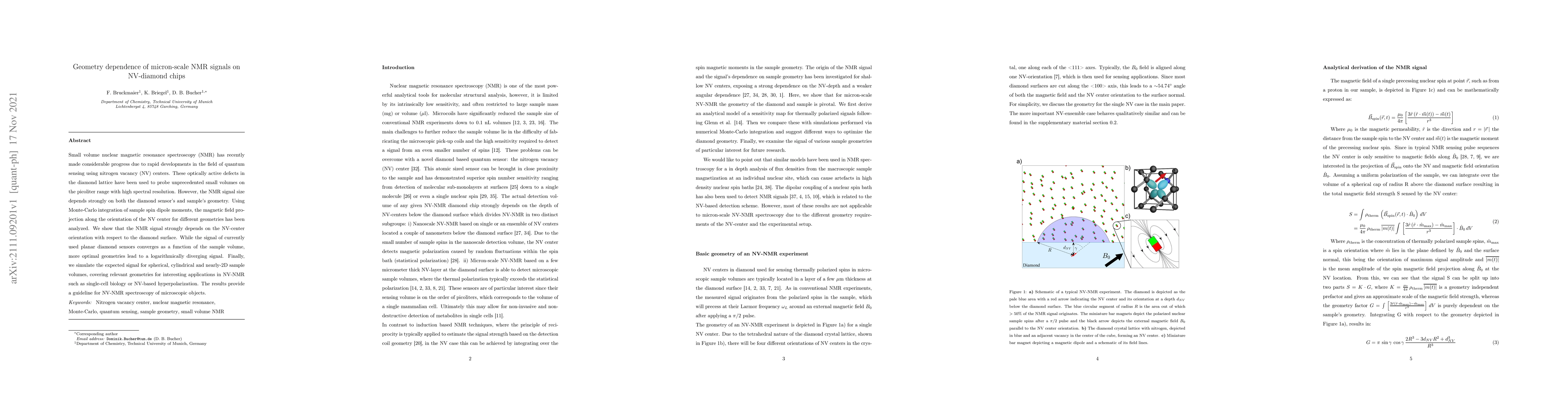 This paper investigates how the geometry of diamond sensors and samples affects micron-scale NMR signals using NV centers. It demonstrates that the NMR signal depends significantly on the orientation of NV centers relative to the diamond surface, with optimal geometries leading to logarithmically increasing signal strength.