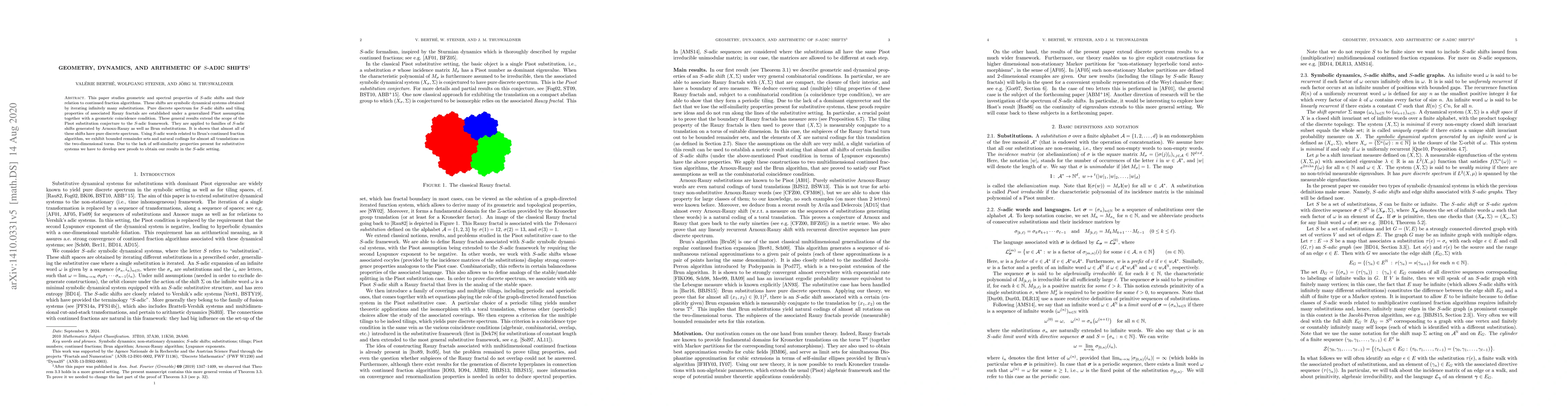 This paper explores the geometric, spectral, and arithmetic properties of $S$-adic shifts, symbolic dynamical systems derived from iterative substitutions, establishing pure discrete spectrum and tiling properties under generalized Pisot assumptions. New proofs are developed to address the lack of self-similarity in these systems, extending results to shifts generated by Arnoux-Rauzy and Brun substitutions.