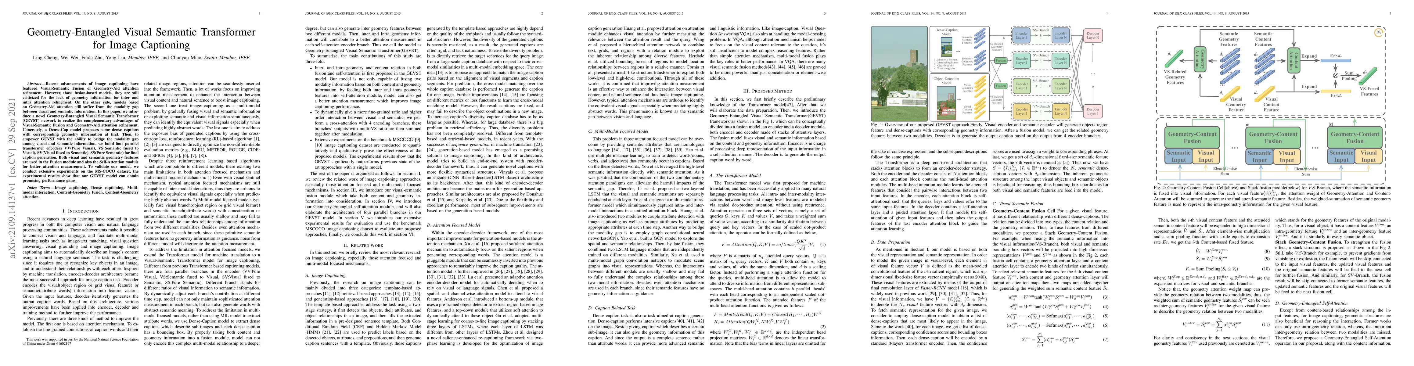 The paper introduces a Geometry-Entangled Visual Semantic Transformer (GEVST) network that combines Visual-Semantic Fusion and Geometry-Aid attention refinement to bridge the modality gap in image captioning. GEVST uses parallel transformer encoders to fuse visual and semantic information and leverages geometry features for improved attention measurement, achieving better performance on the MS-COCO dataset.
