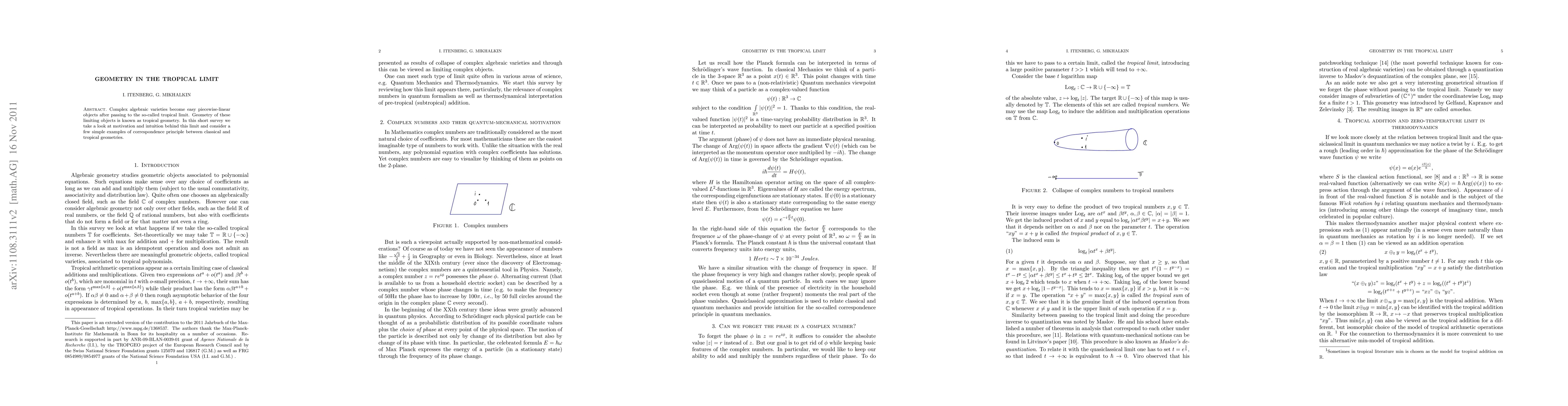 The paper provides a survey on tropical geometry, discussing the motivation and intuition behind the tropical limit and illustrating the correspondence principle between classical and tropical geometries with simple examples.