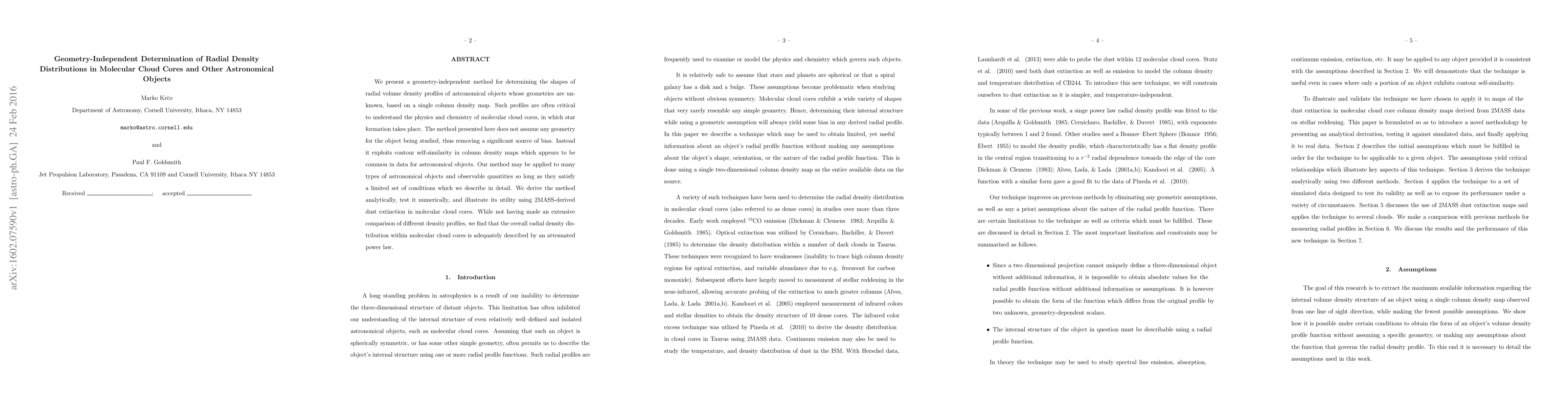 This paper introduces a geometry-independent method to determine radial density profiles of astronomical objects using a single column density map, exploiting contour self-similarity. The method is tested with 2MASS dust extinction data in molecular cloud cores, suggesting their density distributions align with an attenuated power law.