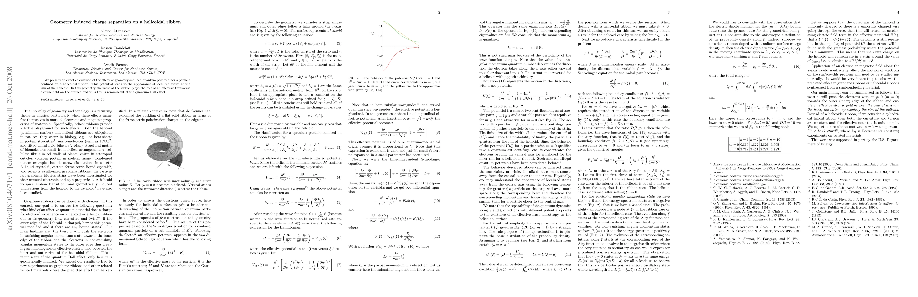 We present an exact calculation of the effective geometry-induced quantum potential for a particle confined on a helicoidal ribbon. This potential leads to the appearance of localized states at the rim of the helicoid. In this geometry the twist of the ribbon plays the role of an effective transverse electric field on the surface and thus this is reminiscent of the quantum Hall effect.