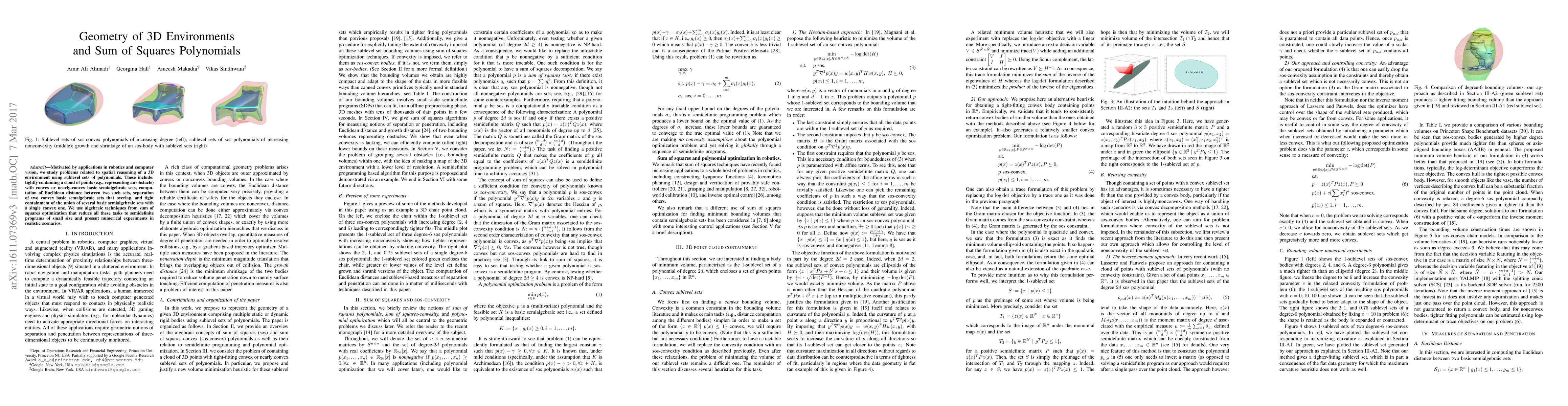 This paper explores spatial reasoning in 3D environments using algebraic techniques, specifically focusing on containing point clouds with convex sets and computing distances between them, leveraging sum of squares optimization to reduce problems to manageable semidefinite programs. Numerical experiments demonstrate the effectiveness in practical applications like robotics and computer vision.