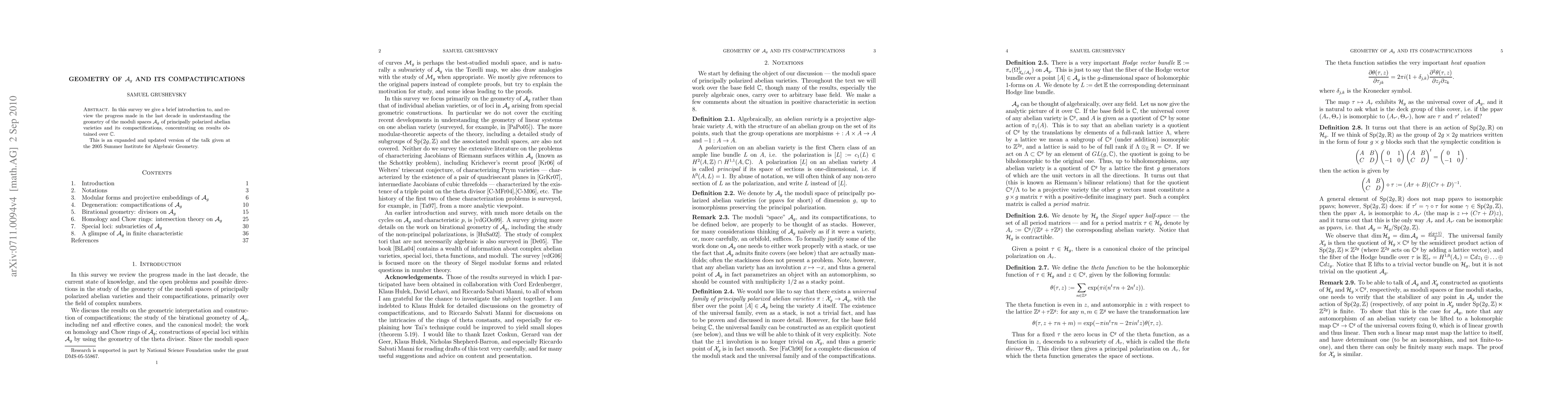 In this survey we give a brief introduction to, and review the progress made in the last decade in understanding the geometry of the moduli spaces A_g of principally polarized abelian varieties and its compactifications. Topics surveyed include: compactifications; birational geometry: nef and effective cones, canonical models; homology, Chow rings and intersection theory; and subvarieties of moduli spaces. We also discuss some open problems and possible further directions. This is an expanded and updated version of the talk given at the 2005 Summer Institute for Algebraic Geometry