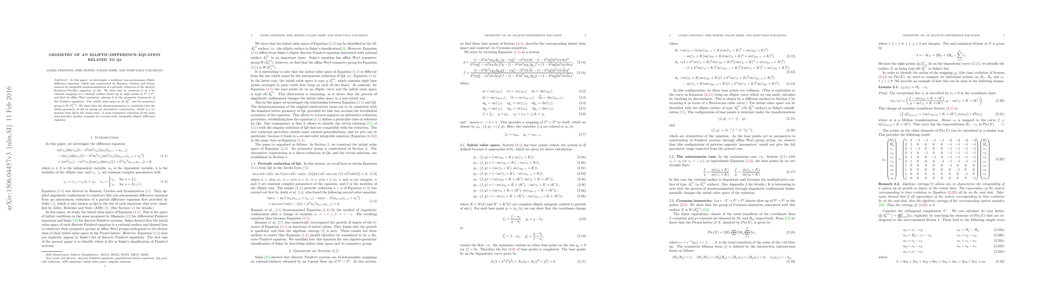 This paper explores a nonlinear elliptic difference equation derived from the Q4 discrete Krichever-Novikov equation. It constructs the equation as a birational mapping on a rational surface and identifies its affine Weyl symmetry, situating it within the framework of the Painlevé equations.